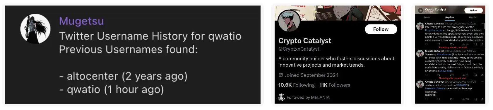 对 0xf3f 使用的 X 账户的分析表明,该账户可能是某个时间点购买的(最近更改了名称,多年未活动,账户比较老)。