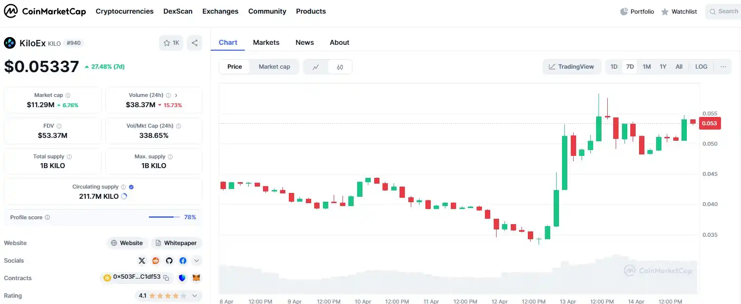 4 月 13 日,KiloEx 又宣布与 Web3 投资机构及做市商 DWF Labs 建立战略合作关系。双方将围绕 KiloEx 市场拓展、生态增长和用户赋能展开深度协作,进一步推动 KiloEx 在去中心化交易领域的布局。