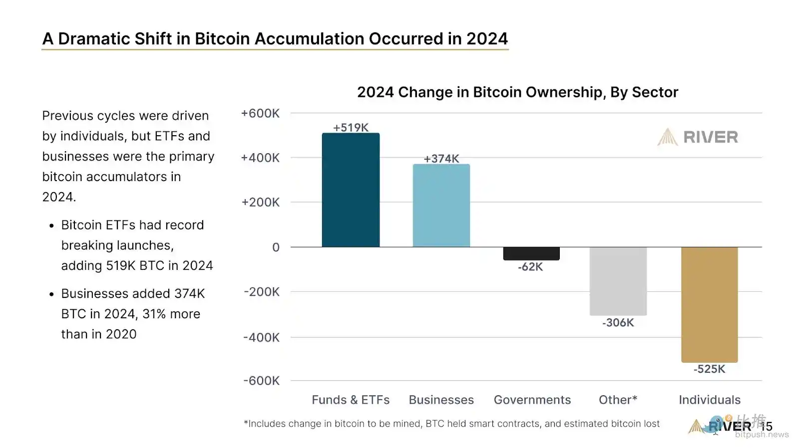 2024 年 BTC 的积累,river.com