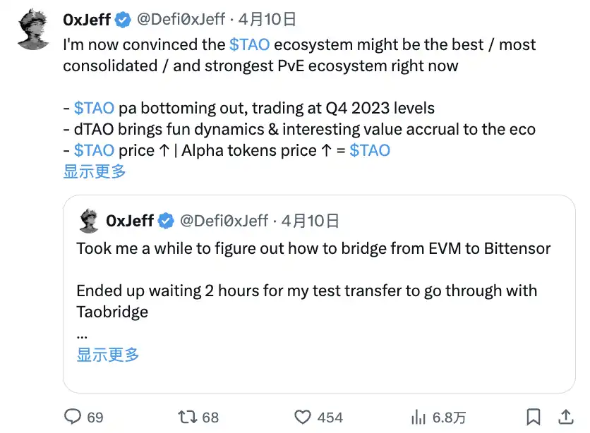 我现在确信$TAO 生态可能是当前最佳/最整合/最强大的 PvE 生态 $TAO 价格触底,交易价格回到 2023 年第四季度水平 dTAO 带来有趣的动态和价值累积