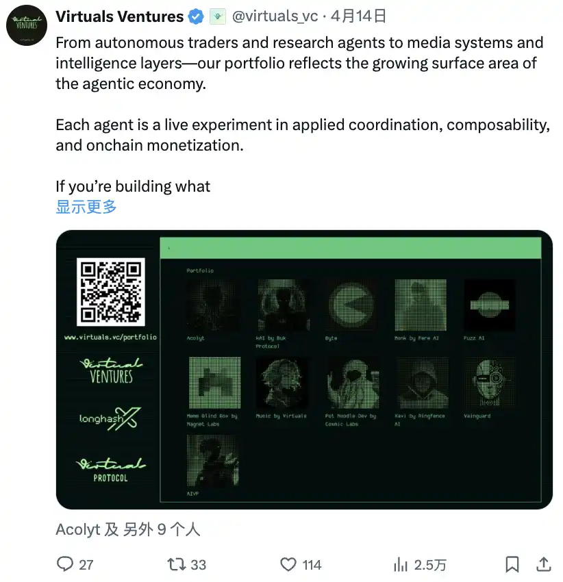 Virtuals Ventures 为 AI 领域提供融资机会: