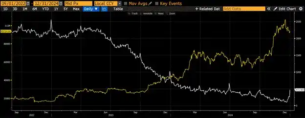 就像 2022 年第三季度一样,人们认为比特币在触及 15,000 美元左右的周期低点后,由于一系列不利的市场因素迭加,可能会跌破 10,000 美元。如今一些人认为,比特币价格将跌破 74,500 美元,跌至 60,000 美元以下,牛市已经结束。耶伦和贝森特可不是闹着玩的。他们将确保政府以可承受的利率获得资金,并抑制债券市场的波动。耶伦发行的短期国债多于长期国债,为系统注入有限的 RRP 流动性;贝森特将通过发行新债回购旧债,并最大限度地利用 RV 基金吸收新增债券供应的能力。这两者都不是大多数投资者所熟知和认可的量化宽松政策。因此,他们对此视而不见,一旦比特币确认突破,就不得不追涨。