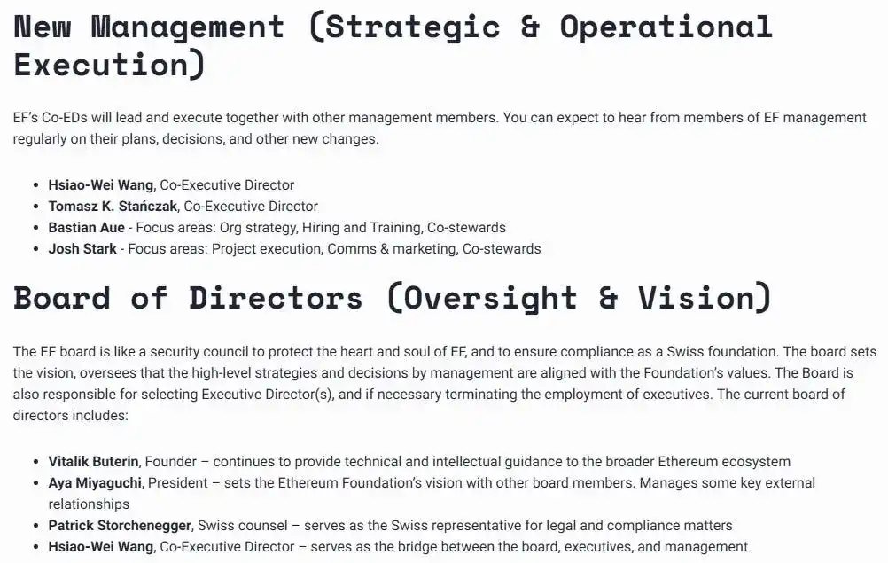 此前,批评者们日益质疑基金会的做法——在竞争日益激烈的市场环境中,基金会将追求理念纯粹性置于竞争地位之上,这种做法是否还能满足以太坊的发展需求。由此引发的重组于四月底正式敲定,这标志着以太坊基金会历史上一次重大的治理变革。