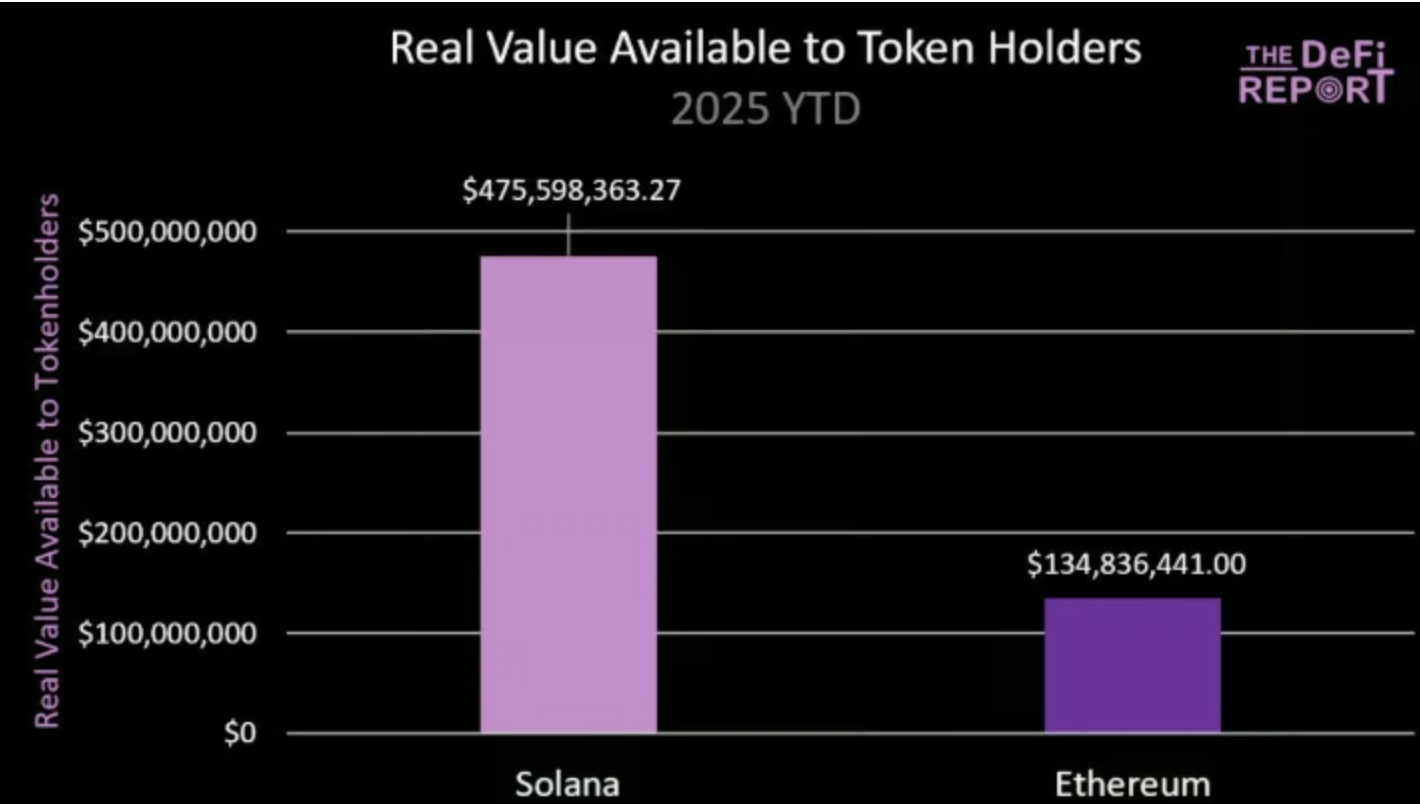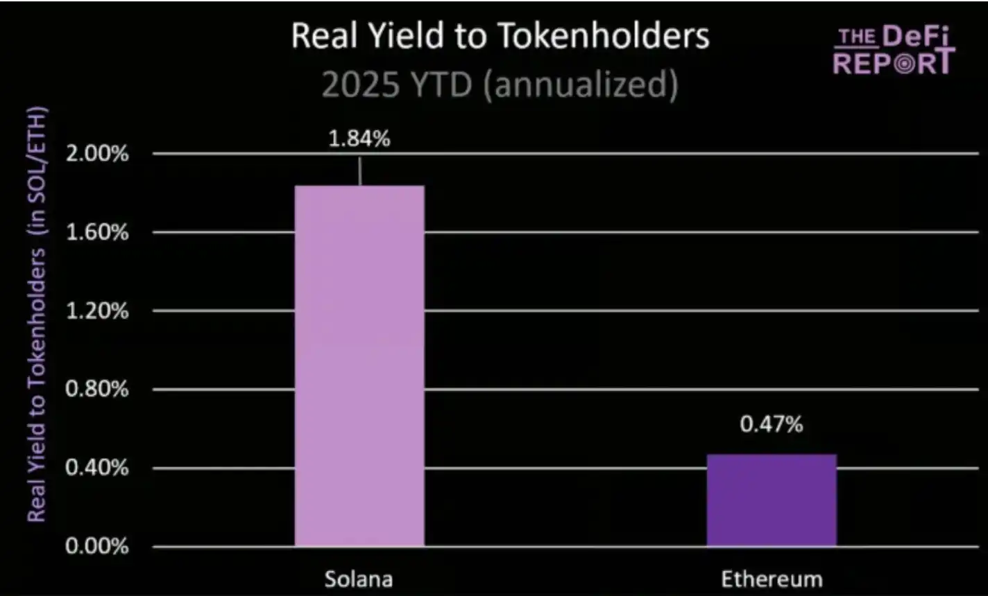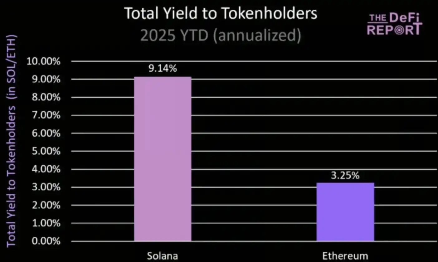 以太坊的 TVL 是 Solana 的 6.6 倍,稳定币供应量是 Solana 的 10 倍。然而,就年初至今代币持有者获得的实际价值而言,Solana 代币持有者获得的实际价值是以太坊的 3.6 倍。因为网络的执行力和流通速度决定了实际价值,验证者和代币持有者才能将 TVL 货币化。