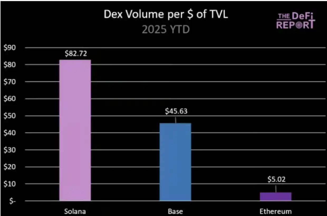 在传统金融 (TradFi) 中,纳斯达克负责执行力和流通速度,DTCC(Depository Trust & Clearing Corporation)负责托管/结算。以太坊越来越像 DTCC(托管 + 结算/L2 交易的会计),Base 和其他 L2 平台越来越像纳斯达克(处理执行/速度)。而 Solana 则越来越像两者的结合体。