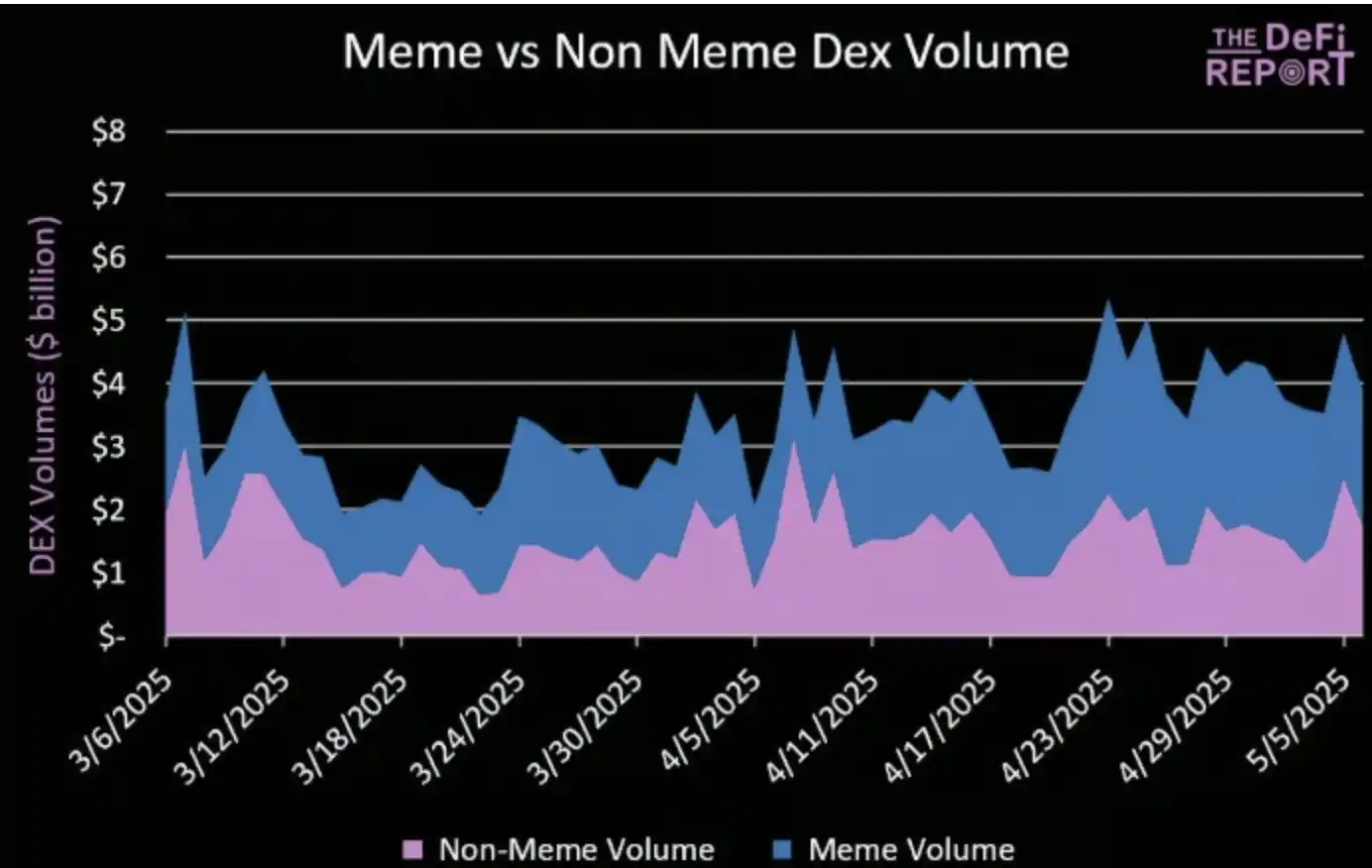今天是 Meme,或许明天流行的就是股票、债券、货币和私人资产,这可能才是 Solana 的目标。目前以太坊主网上的 DEX 交易量中,仅有 1-2% 是 Meme 币,稳定币交易量约占一半,ETH/稳定币的交易量和其他项目代币分别占交易量的 20% 左右。但目前 Base 上大约 50% 的 DEX 交易量来自 Meme,其中绝大多数都是新流行的 Meme。