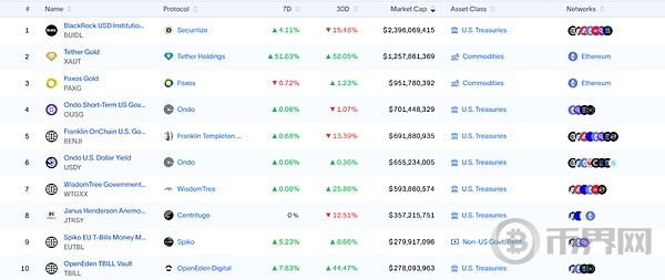 首先自然是 Ondo Finance,作为 RWA 代币化赛道的龙头项目,其最初定位为链上债券与国债的代币化平台,且截止发文时,Ondo Finance 依托美国国债的两大旗舰产品 USDY 和 OUSG,依旧在 RWA 代币化赛道中牢牢占据体量前十的核心位置。
