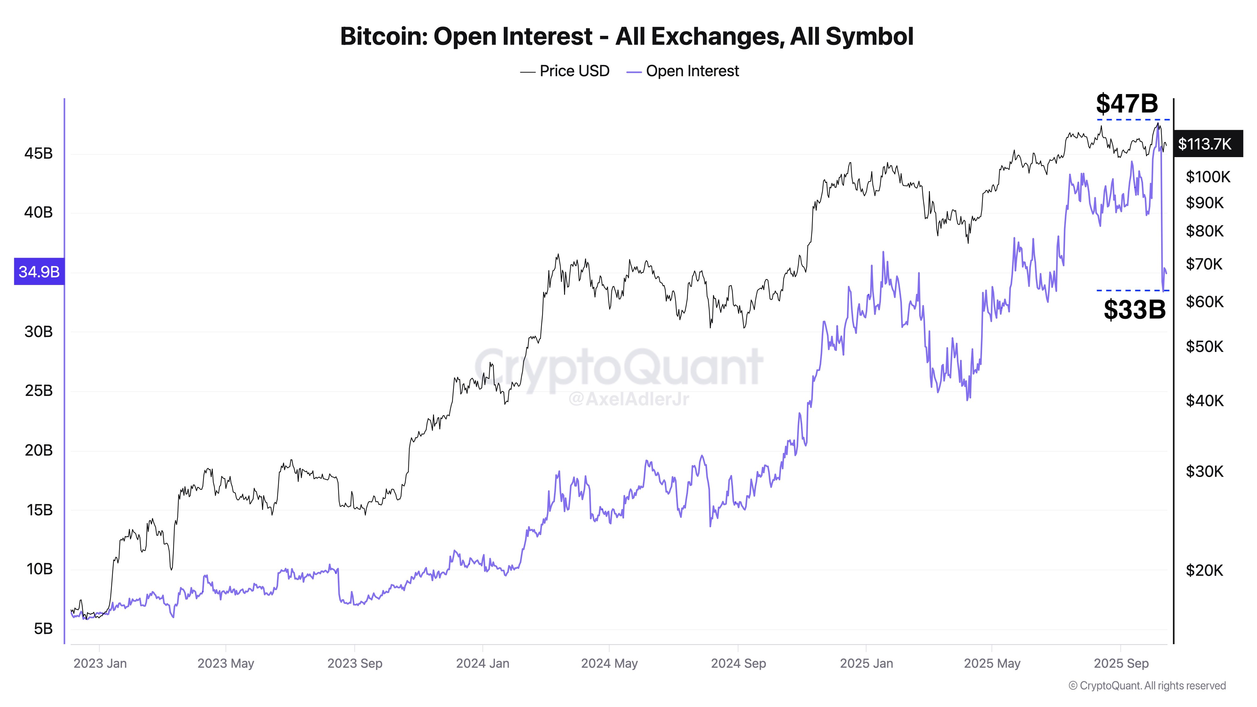 顶级分析师阿克塞尔·阿德勒(Axel Adler)分享了新的数据,揭示了周五事件的严重性。根据他的分析,现货交易量飙升至440亿美元,接近周期高点,而期货交易量则达到1280亿美元。更值得注意的是,未平仓合约减少了140亿美元,但其中只有10亿美元来自BTC多头平仓。阿德勒解释说,这是一场可控的去杠杆事件,而非清算级联效应——表明市场参与者是手动降低风险,而非被迫退出。尽管如此,由于比特币难以维持结构性支撑,波动性仍然较高。