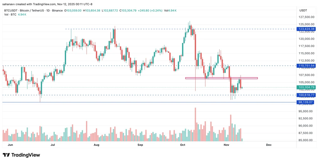 比特币 (BTC) 在短暂回落至 102,500 美元下方后,继续稳守 103,000 美元上方。尽管短期波动较大,但该资产的整体结构依然强劲看涨——这表明买家正在将该区域视为关键转折点进行防守。