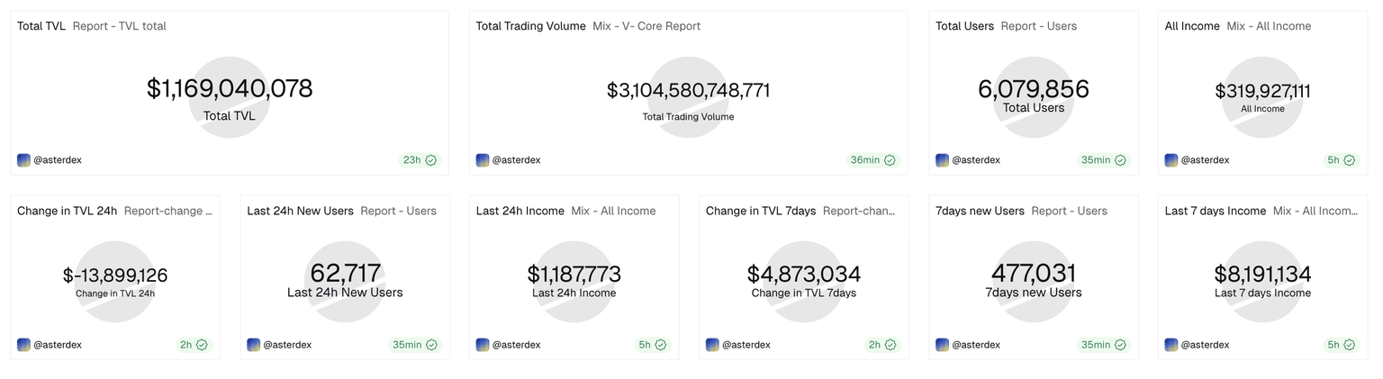 Aster的交易量突破3万亿美元大关,接近Hyperliquid自成立以来3.2万亿美元的交易量纪录。截至周三,Aster的总交易量达到3.1万亿美元,总锁定价值(TVL)为11.6亿美元。