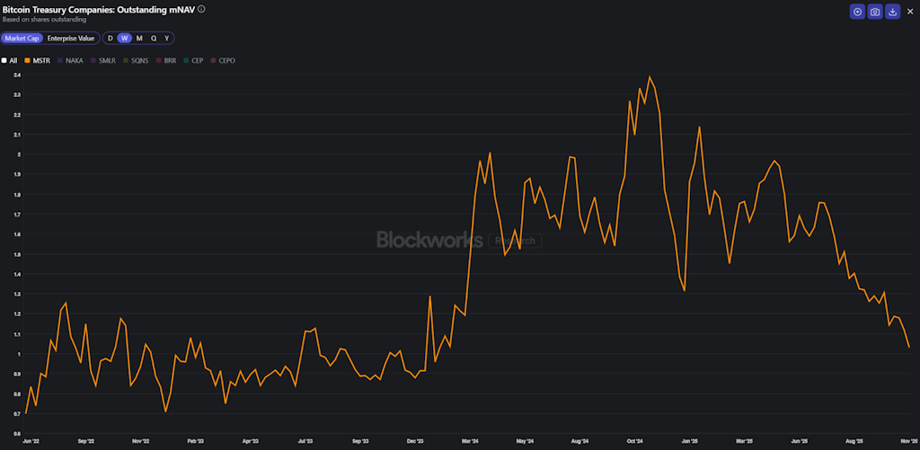 由于该策略的先驱企业Strategy(前身为MicroStrategy)的市净率自2024年初以来首次跌破1,人们开始对财务管理公司的可持续性产生怀疑。该公司的市净率自特朗普当选后达到2.4的峰值以来,一直在稳步下降。