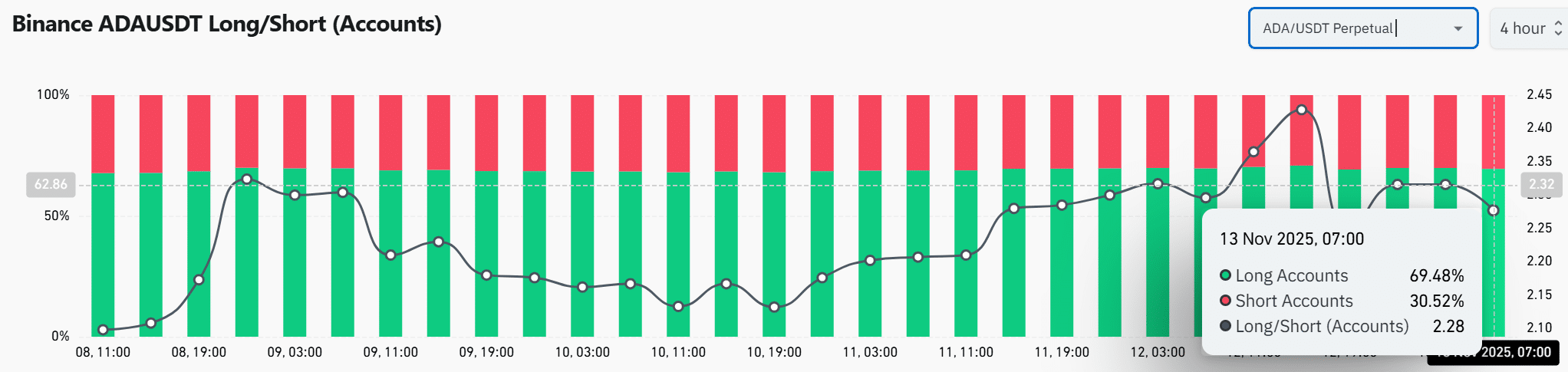 OI 扩张与价格结构收紧相一致,增加了 ADA 突破楔形区域后出现剧烈波动的可能性。