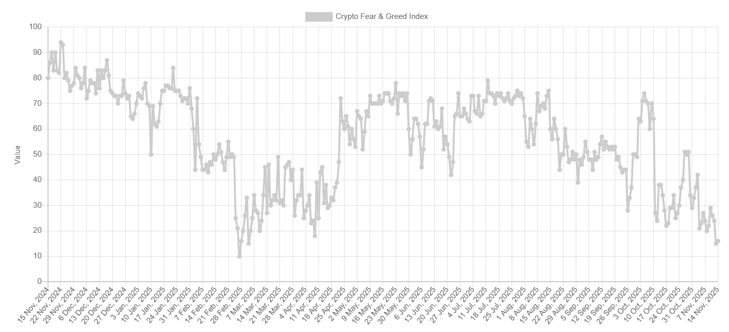 周五,恐惧与贪婪指数跌至 16,接近 3 月初的低点,表明市场参与者为应对进一步下跌做好准备,市场情绪急剧转向极度恐惧。