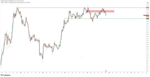 值得注意的是,看跌压力从图表蜡烛图中可以明显看出,每当 Solana 接近红色阻力区时,其走势都会持续减弱。这一趋势反映了其强度的减弱和稳定的增长。动能下降此外,加密货币整体下跌趋势和波动性上升也进一步加剧了这一趋势。