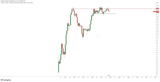 DonAlt也显示他认为这是近几个月来他见过的最看跌的高时间框架(HTF)图表之一。该图表显示,价格在208美元附近的上边界处遭遇明显回落,凸显了更高时间框架内价格的疲软态势。