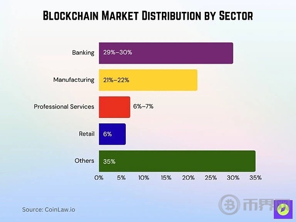 占比为 35%,涵盖能源、医疗保健和物流等多个行业,区块链在这些领域支持安全的数据交换和流程效率。