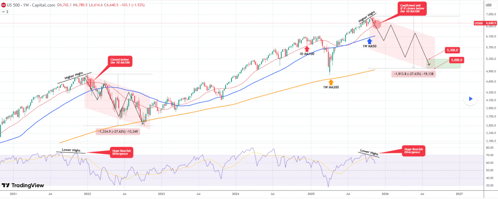 如果指数在周线收盘时跌破该支撑位,技术分析师会将其视为趋势转变的确认信号,而非暂时回调。下一个重要的长期支撑位位于200周移动均线附近——该区域也是2022年下跌行情的底部所在。