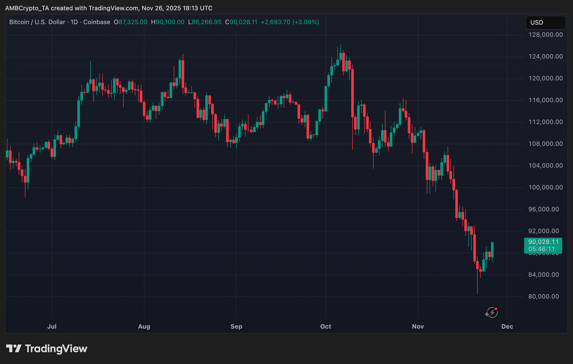 - 在今天的追回之前,9万美元曾短暂跌破。