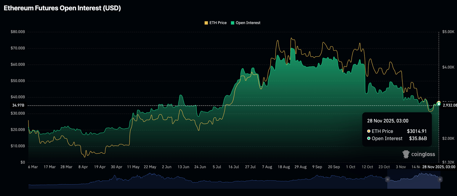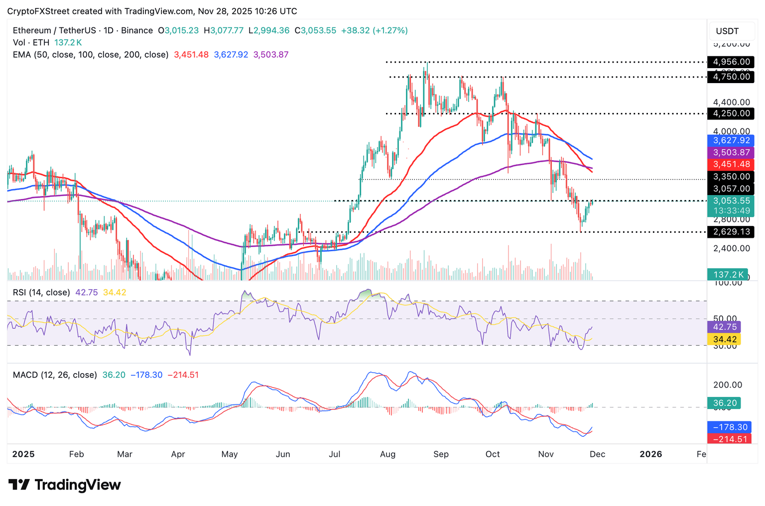 尽管以太坊在 3,000 美元附近获得支撑,但除非上涨趋势突破 50 日均线 3,451 美元和 200 日均线 3,503 美元,否则以太坊仍面临继续下跌至 2,629 美元支撑位的风险,该支撑位曾在 11 月 21 日受到测试。