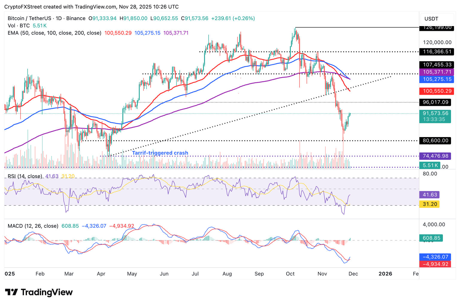 截至周五发稿时,比特币交易价格高于 91,000 美元,多头正努力维持控制并稳步向 100,000 美元迈进。日线图上的相对强弱指数 (RSI) 为 41,且呈上升趋势,表明空头动能有所减弱。受移动平均收敛/发散指标 (MACD) 发出的买入信号支撑,投资者可能会继续增加风险敞口。