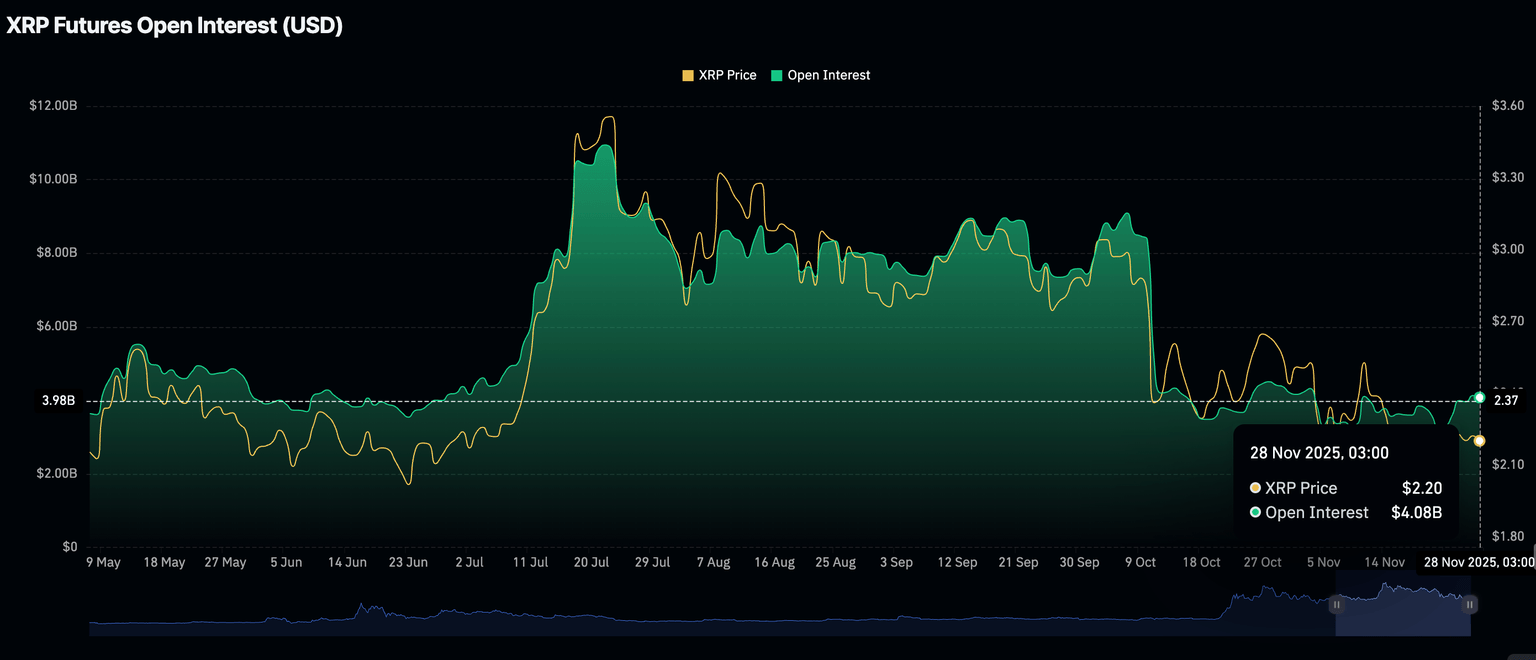 XRP 衍生品市场也处于疲软状态,本周五期货未平仓合约为 40 亿美元,比 10 月 10 日的 83.6 亿美元和 7 月 22 日创下的 109.4 亿美元的历史最高纪录低了一半以上。