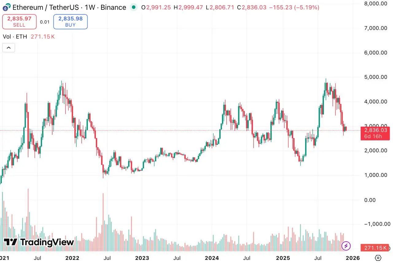 - 技术面显示,以太坊一度重新站上 3000 美元上方的支撑位,随后又回落至该价位以下。