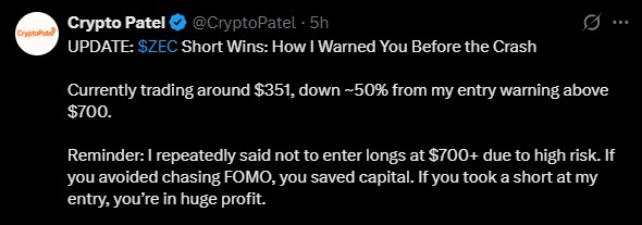 短短24小时内下跌20%并非孤立事件。多种因素同时作用,导致$ZEC价格暴跌。
