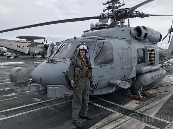 2020年,海军少校扎克·罗德里格斯在一架直升机旁留影。那次太平洋巡航任务,开启了这位海军飞行员的加密货币投资启蒙之旅。