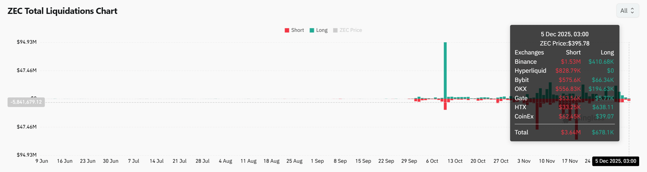 此外,多头平仓减少反映出需求强劲,且随着 ZEC 价格上涨,逢低买盘持续积累。