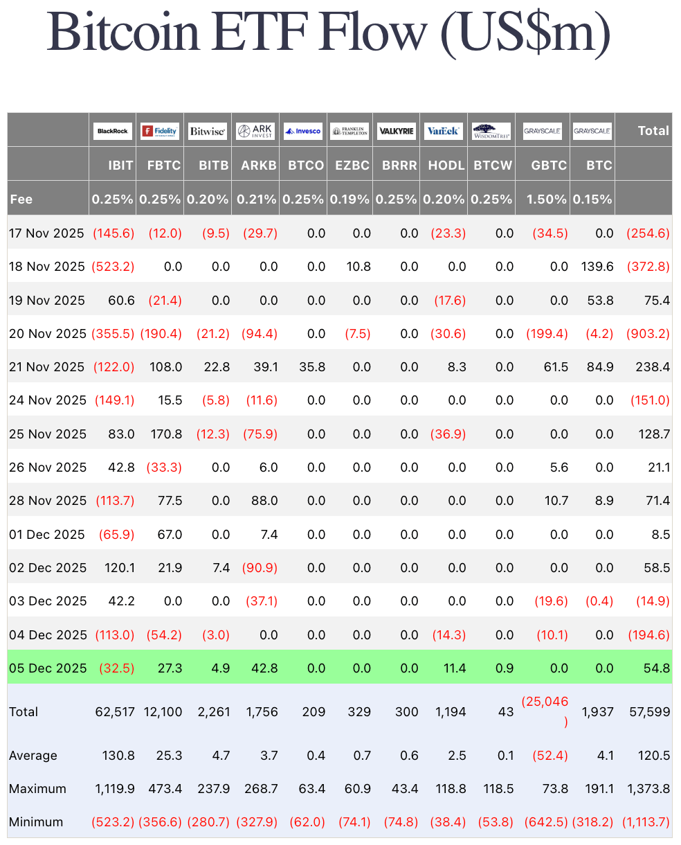 Farside 的数据显示了比特币 ETF 的资金流动情况。12 月份,近 2.5 亿美元从比特币 ETF 中流出。