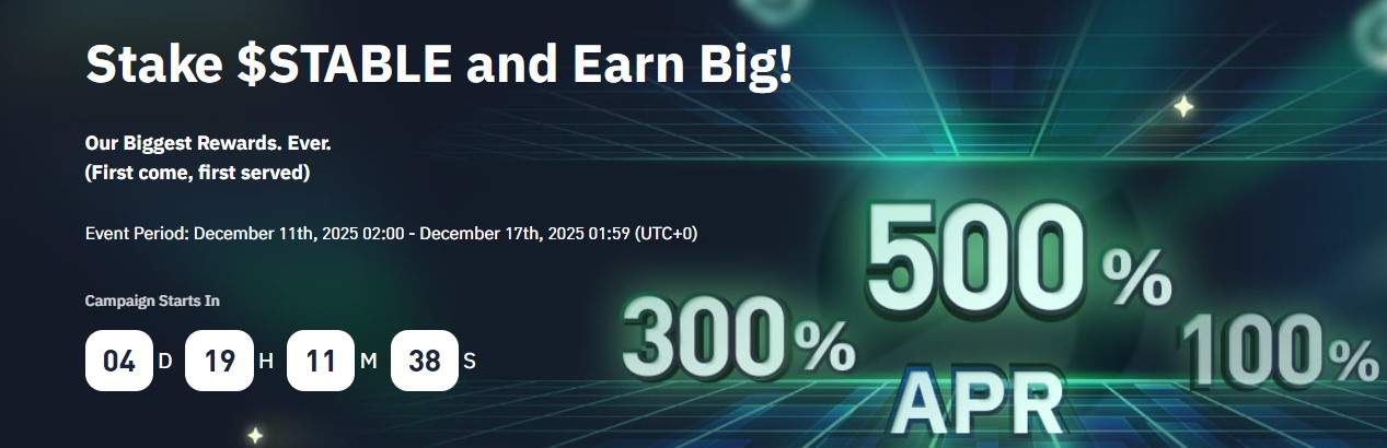 STABLE 质押活动定于 2025 年 12 月 11 日至 12 月 17 日举行,参与名额有限,先到先得。