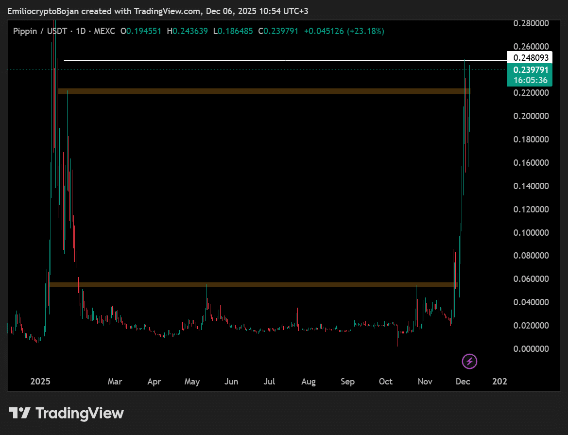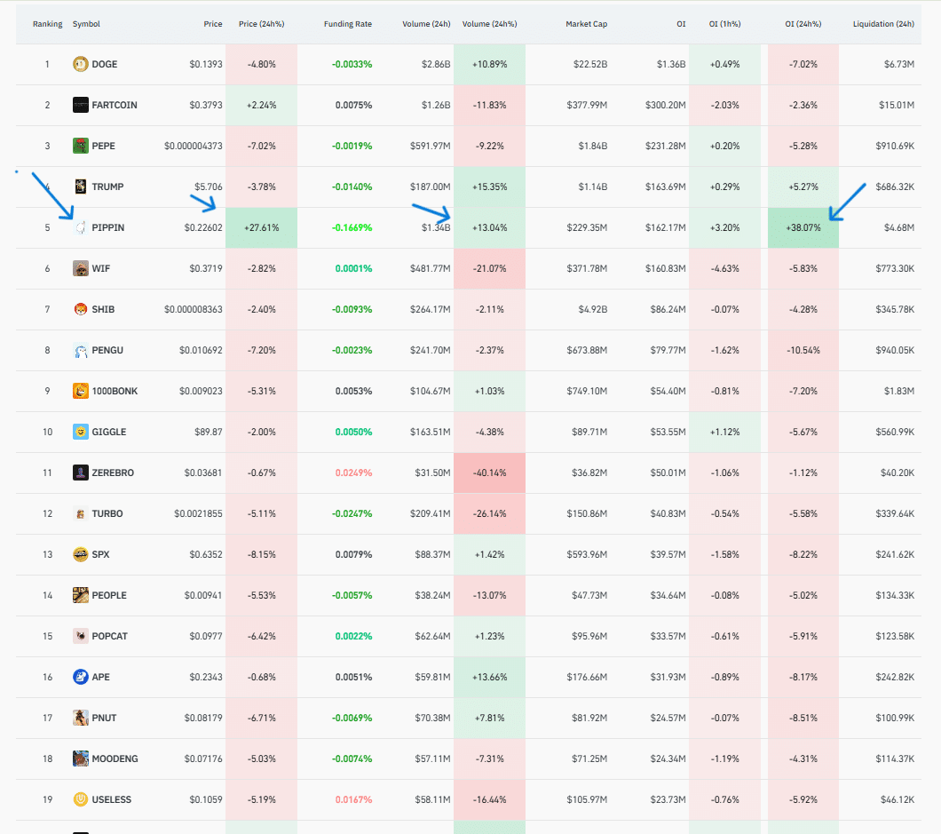 过去一天,截至发稿时,pippin [皮平] 上涨了 59%,此前几周,整个模因币领域都出现了悄然的积累。