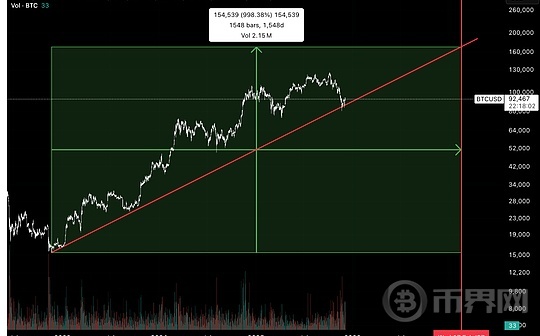 从周期低点开始衡量价格回调,有一个关键支撑位在整个周期中一直保持不变,并且在每次低点时都发挥着重要作用。