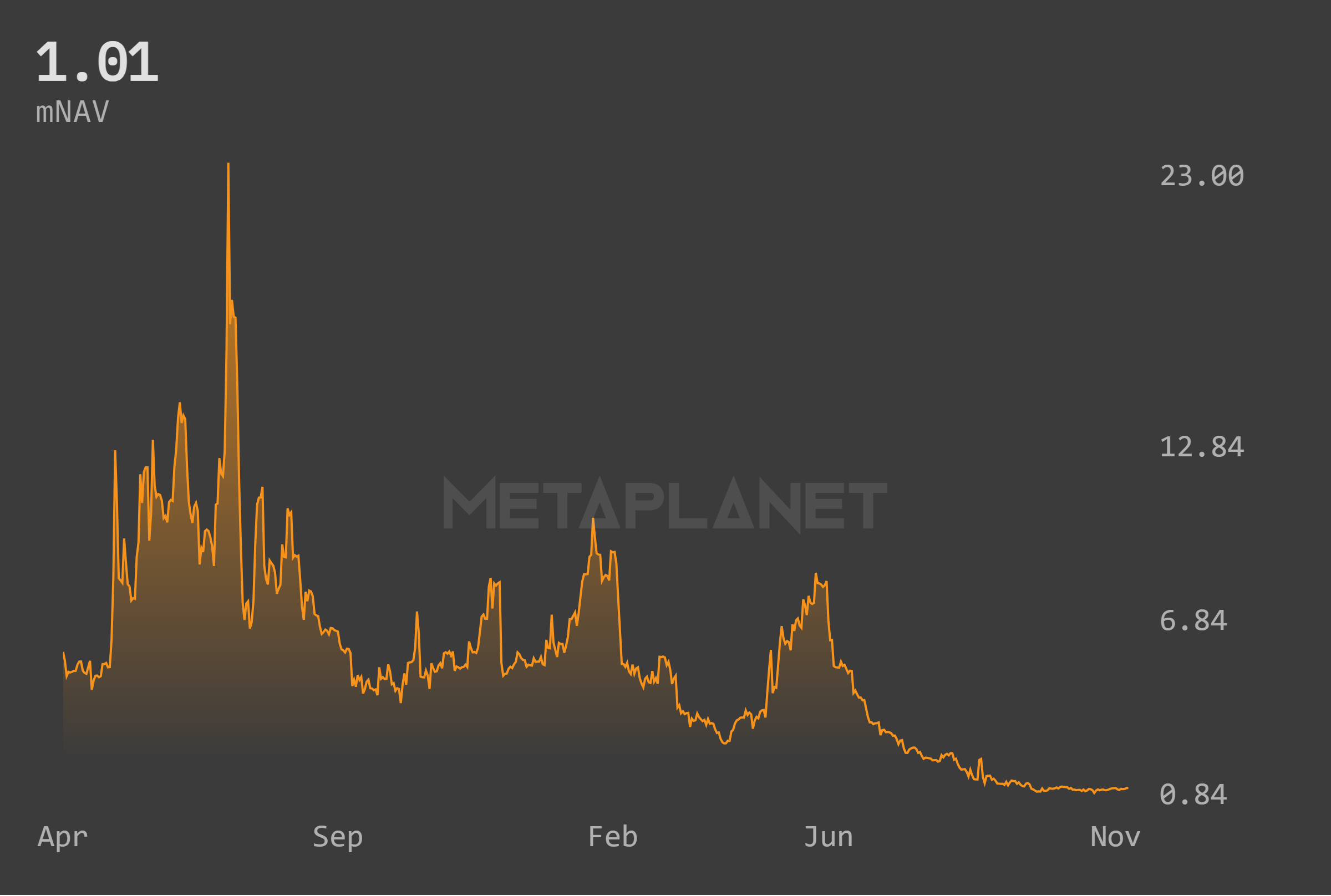 截至发稿时,mNAV 为 1.01 倍——低于历史最低点 0.93 倍。