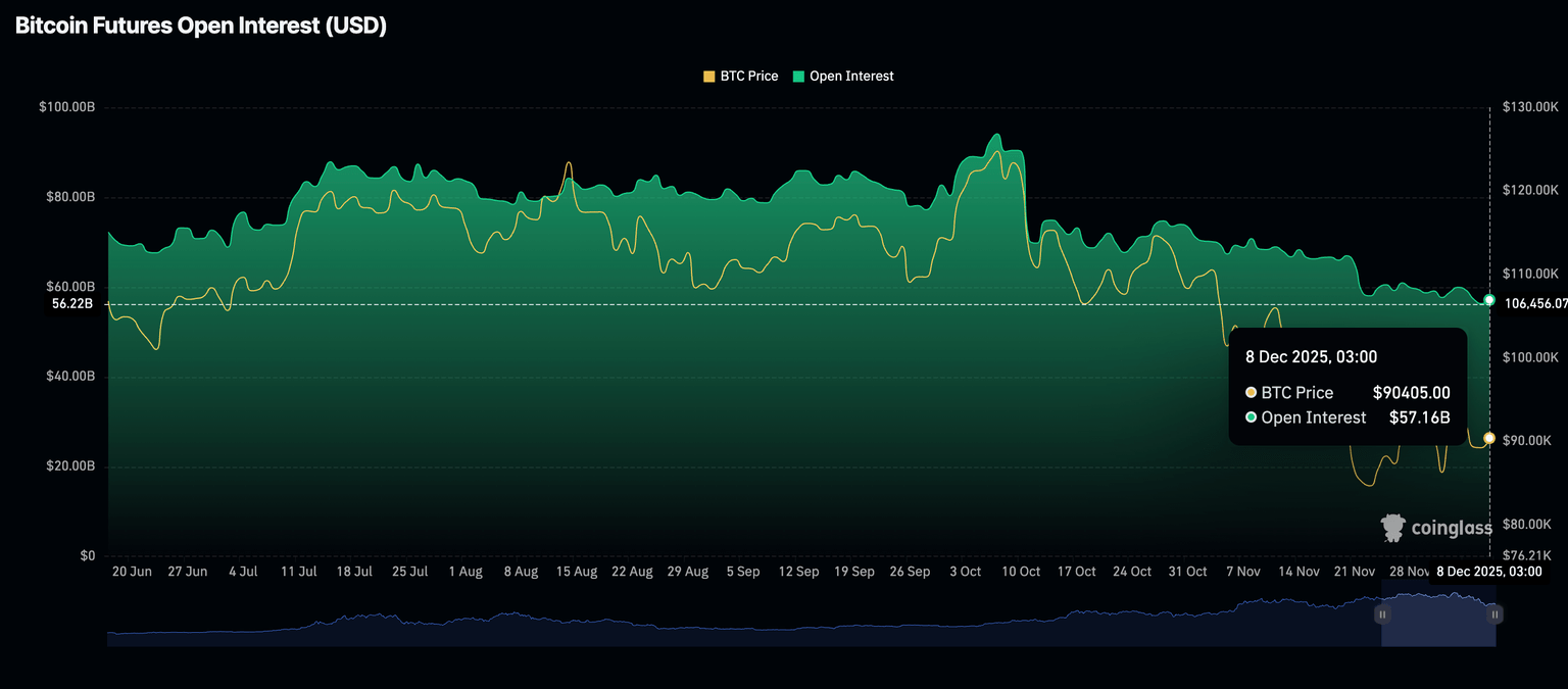 然而,尽管周一期货未平仓合约(OI)从前一日的563.2亿美元小幅上升至571.6亿美元,但零售需求依然显著低迷。目前,OI远低于10月7日创下的941.2亿美元的历史高位,而10月10日正是闪崩发生之前。零售需求低迷通常反映出市场上涨动力不足,因为投资者并不相信比特币价格能够持续上涨。