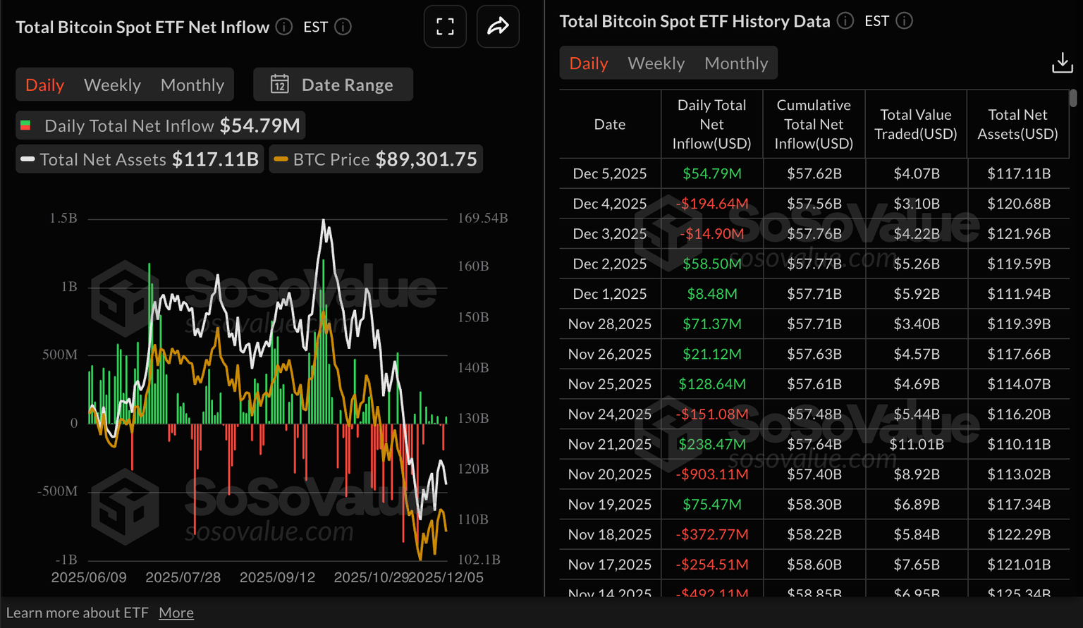 根据 SoSoValue 的数据,比特币现货交易所交易基金 (ETF) 周五恢复资金流入,在周四连续两天流出 1.95 亿美元和周三流出 1500 万美元之后,流入资金近 5500 万美元。
