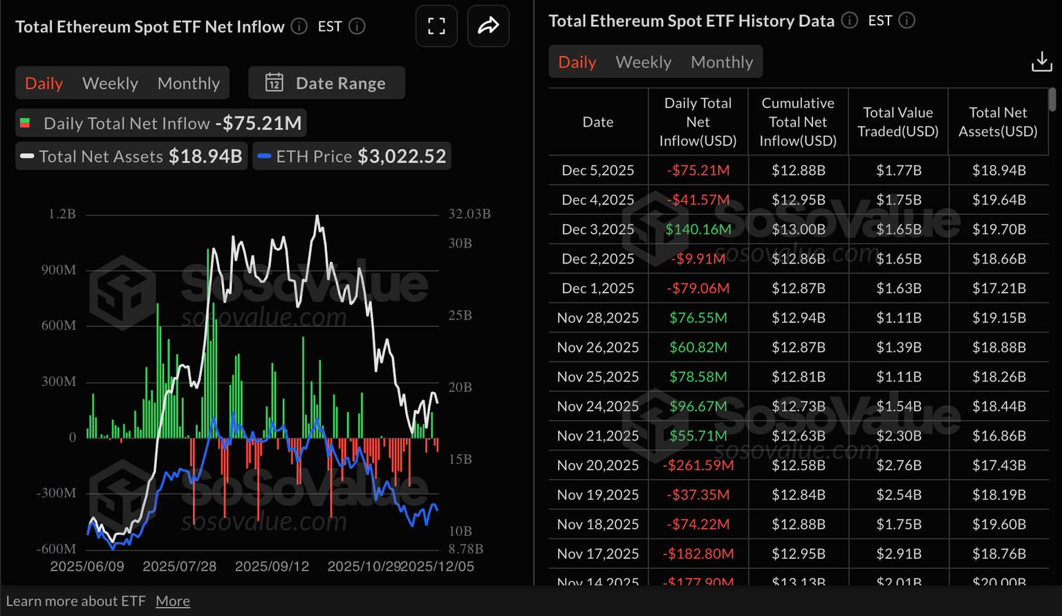 与比特币不同,以太坊周五和周四分别经历了7500万美元和4200万美元的资金流出。贝莱德旗下的ETHA是周五唯一一只在美国上市的以太坊现货ETF,其余ETF均保持平稳。与此同时,累计资金流入量仍为128.8亿美元,净资产为189.4亿美元。