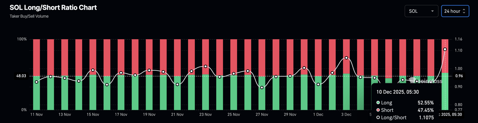 从技术层面来看,随着抛售压力减弱,Solana 正在重拾强势。日线图上的相对强弱指数 (RSI) 为 48,正缓慢向中线靠拢,表明空头压力有所下降。