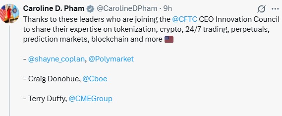 在另一项相关更新中,代理主席卡罗琳·范宣布成立首席执行官创新委员会,讨论美国衍生品市场的未来。