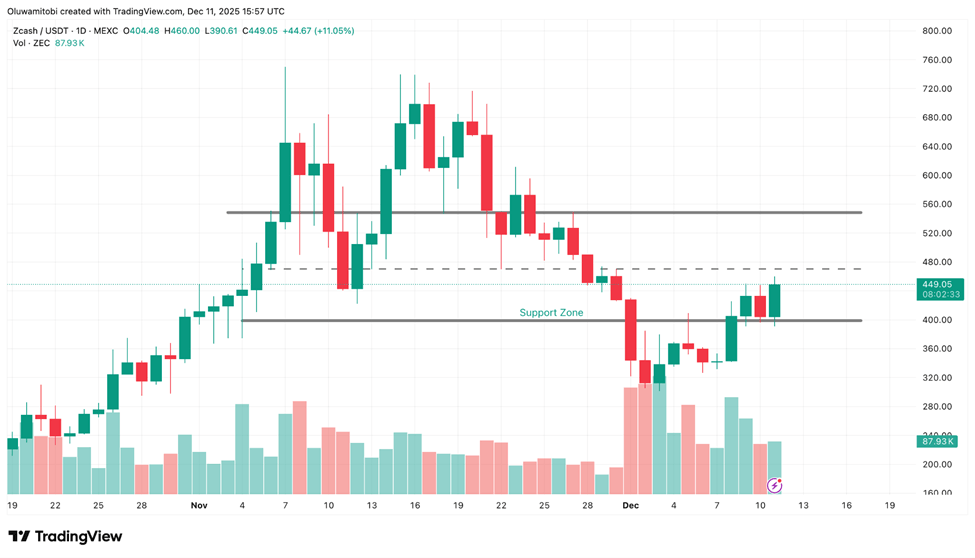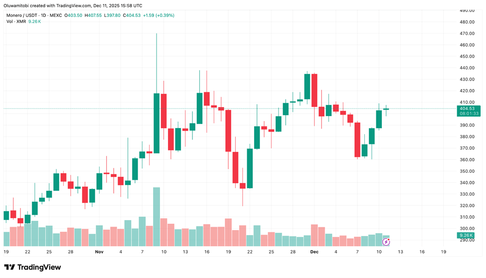 大宗持仓者的增持可能是ZEC阻力位走高的原因之一。与此同时,XMR在关键突破区域附近的走势持续吸引着密切关注隐私板块下一步动向的交易员的目光。