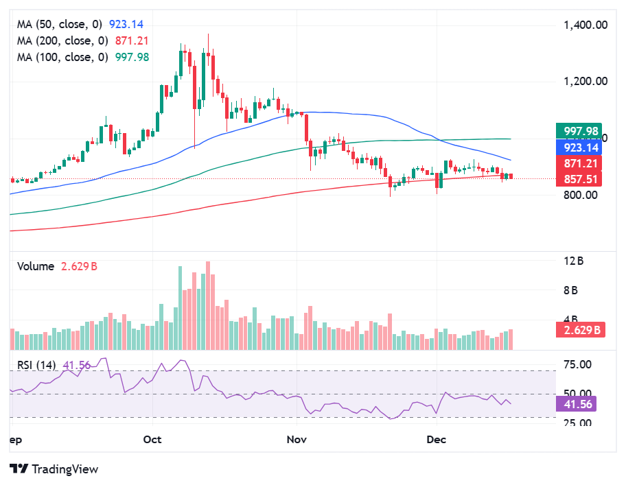 - 受加密货币市场整体不确定性的影响,BNB价格在860美元附近波动。