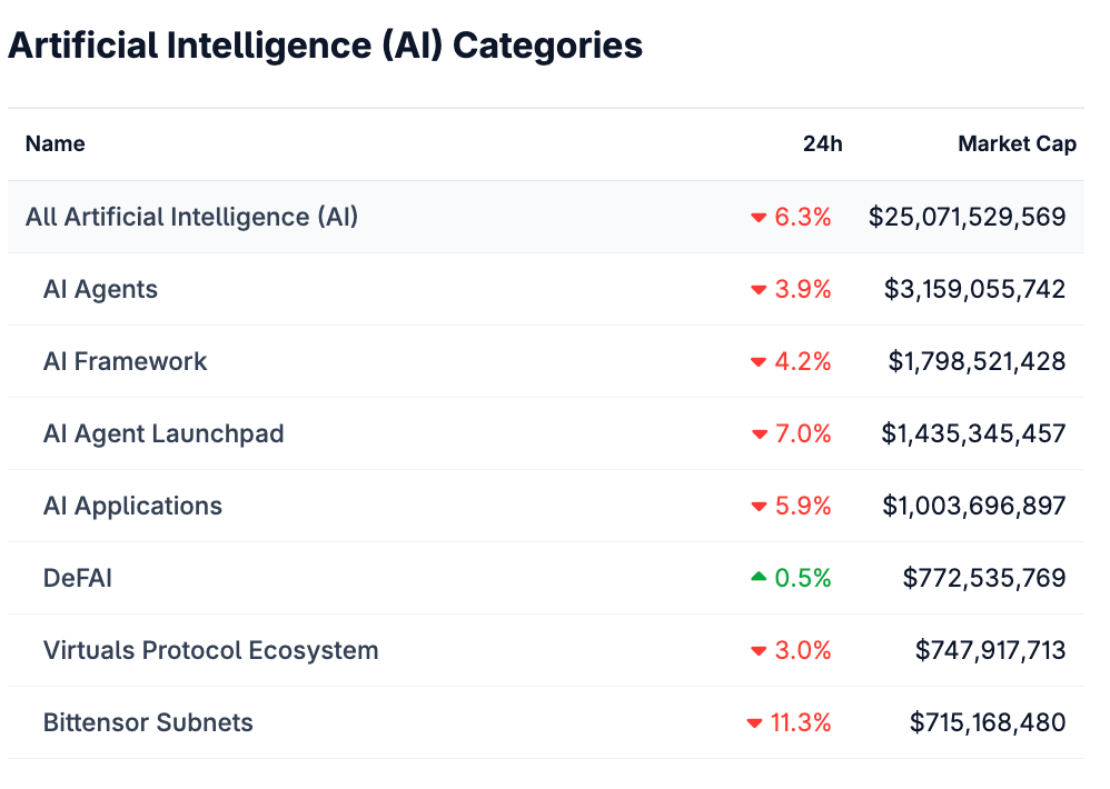 推动增长的主要催化剂包括英伟达和OpenAI等人工智能巨头的发布,以及Web3生态系统中人工智能应用的进一步发展。这可能会推动人工智能代理和人工智能应用类别的增长。