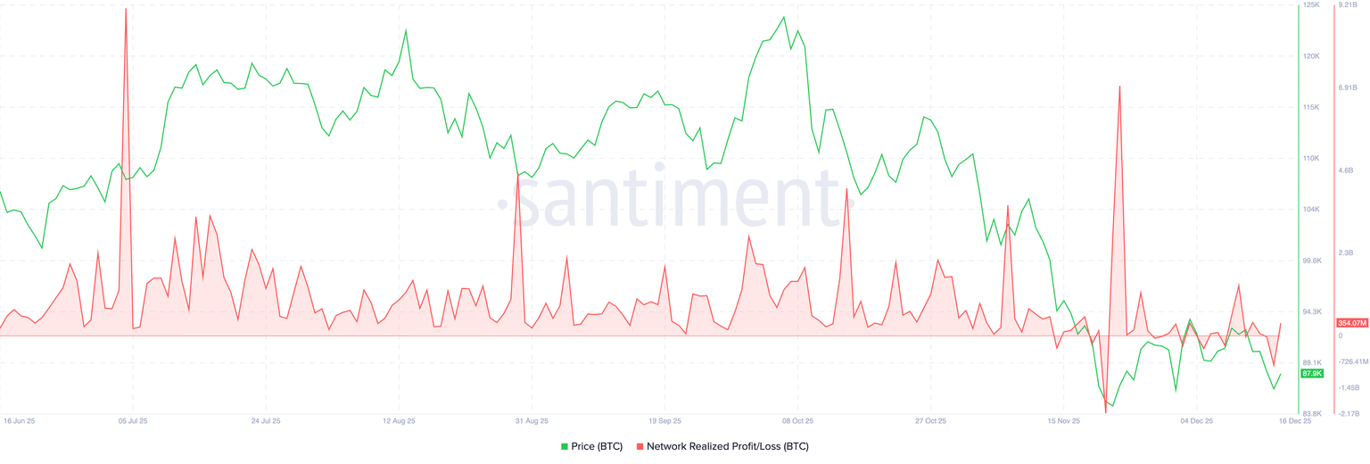 比特币价格及网络实际盈亏 | 来源:Santiment