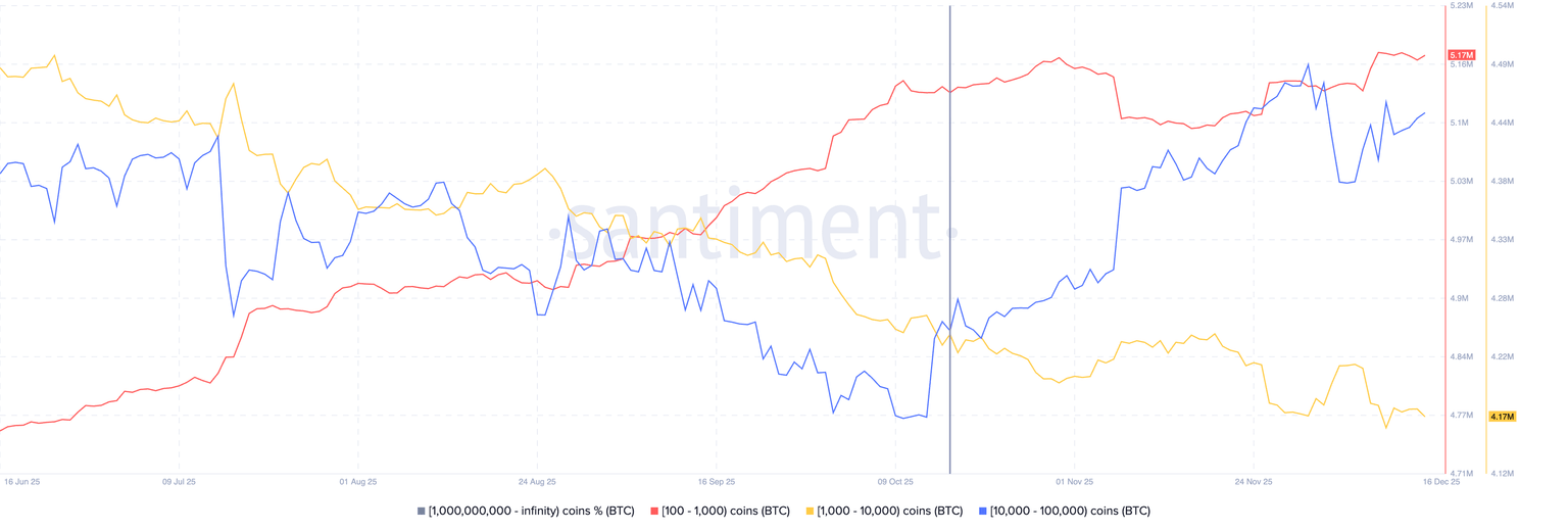 比特币10月和11月,机构投资者对比特币的需求骤减,比特币遭遇了逆风。这种加密货币之王的价格从超过12.6万美元的历史高位暴跌,散户交易者、持有超过1万枚比特币的巨鲸以及大型机构投资者纷纷获利了结。