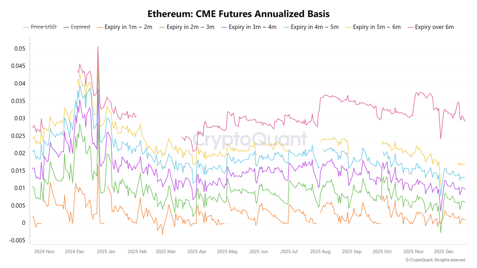除其他因素外,对冲基金和套利者也是导致价格暴跌的主要原因。这些基金此前进行过2024年11月/12月到期的基差交易,当时以太坊芝加哥商品交易所(ETH CME)的基差约为20%。