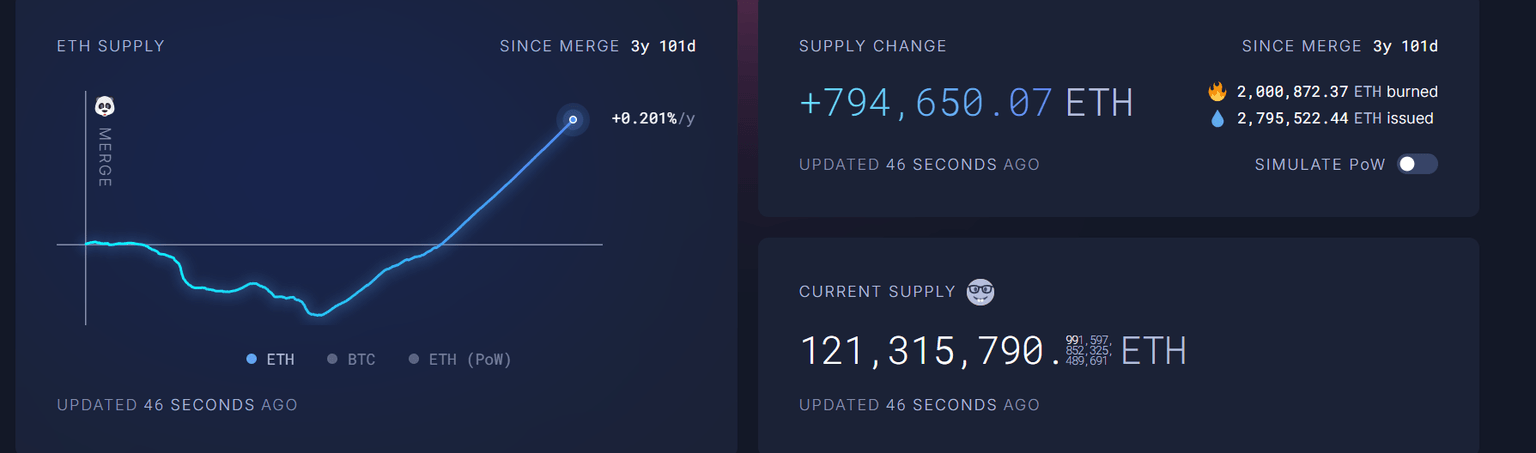 因此,以太坊上销毁的 ETH 数量持续下降,推高了总供应量。