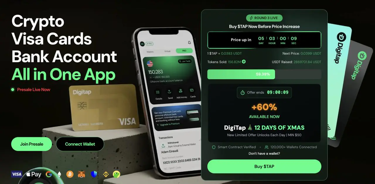 价格差距意味着当前预售阶段的价格与正式发售价格之间存在约 319% 的差异,且不受短期市场波动的影响。与许多早期项目不同,Digitap 的实用功能已经上线,这使得 $TAP 成为专注于基础设施而非叙事炒作的最佳加密货币预售项目之一。