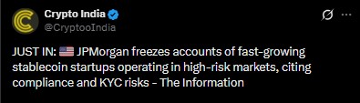 在摩根大通冻结了两家由Y Combinator支持的稳定币初创公司Blindpay和Kontigo的账户后,这个问题如今已成为日益激烈的争议焦点。据Crypto India报道,此案意义重大,因为它反映了包括银行在内的传统金融机构与那些在受制裁地区附近从事加密货币交易的机构之间日益加剧的冲突。