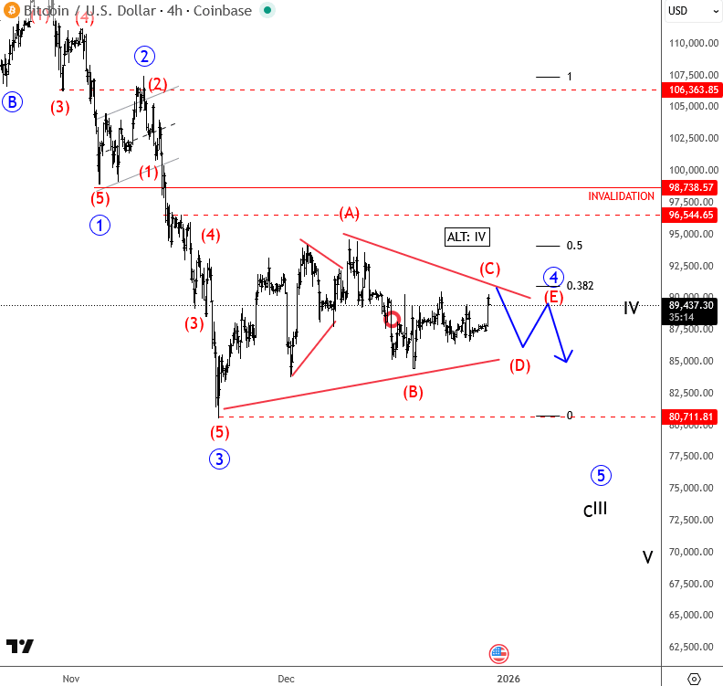 æ¯ç¹å¸å¯è½å·²ç»å®æäºç¬¬ä¸æµªï¼V浪ï¼çæ¶ææ§ï¼å½¢æäºä¸ä¸ªå¯¹è§çº¿/æ¥å½¢å½¢æãå³ä½¿ä»å¨ææ§èµ°å¿æ¥çï¼æ¯ç¹å¸çé¡¶é¨ä¹åºç°å¨2025å¹´10æï¼å æ¤éè¦è¦æå½åççå¸ä»¥åæ´é«é¶çç¬¬åæµªï¼IV浪ï¼çè°æ´ã