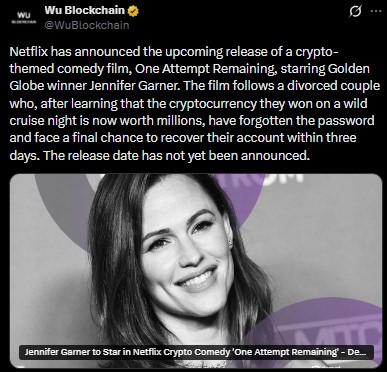 总的来说,所有这些项目都呈现出一种显而易见的模式。加密货币正从金融服务领域扩展到电影和教育等其他领域。预计发布日期在2026年2月左右,Netflix的公告势必会将这一趋势推向新的高度,尤其对于那些可能从未进行过交易但意识到数字时代风险的观众而言更是如此。